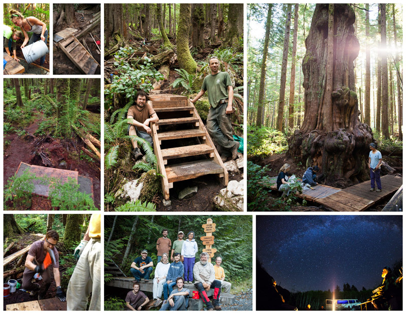 Volunteers this summer worked tirelessly to complete many things including two sets of much-needed steps up the slope towards the Gnarly Tree; many gravel steps leading into the Lower Grove; a bidge over the creek in the Upper Grove; various platforms and steps over obstacles in the Lower Grove; adding metal traction to the boardwalk surface; blocking off old trails and edging the path with logs; and more!! All of this work will help to protect the forest's delicate understory from excessive trampling, improve visitor access and safety, and help support the local economy of Port Renfrew and the Pacheedaht First Nation Band through eco-tourism.