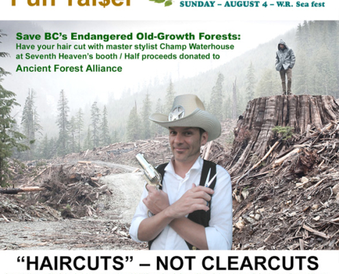 Thanks to Seventh Heaven Bio Salon in co-operation with Green Circle Salons (https://bc.greencirclesalons.ca/) for their "Haircuts not Clearcuts" fundraiser for the Ancient Forest Alliance this past Sunday, August 4th, at the Spirit of the Sea Festival in White Rock!