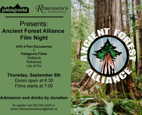 Hey Victoria Friends! Join us at Robinson’s Outdoor Store (1307 Broad St, Victoria) on Thursday, September 8th at 6:30 pm for a Film Night and Fundraiser for AFA!