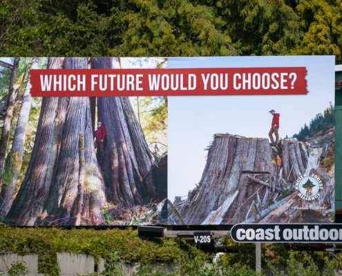 We have a new billboard on display as you’re heading to the Swartz Bay ferry terminal that poses a critical question: Which future would you choose?