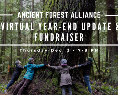 We’re hosting our annual year-end event and fundraiser on Thursday, December 3rd, from 7-8 pm - this time on Zoom! Join us to learn what we've been up to this past year and what's next for BC's old-growth forests. Plus, you could win some fun prizes!