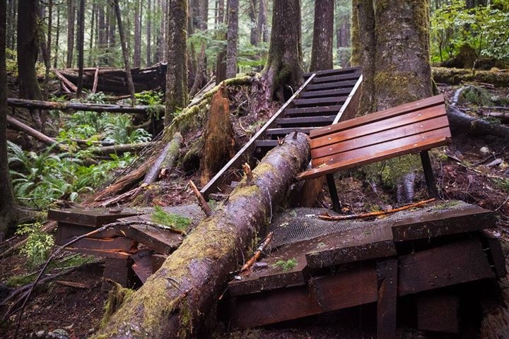 Last weekend's hurricane-force winds in Port Renfrew resulted in at least 30 trees (luckily none of the spectacular giants) crashing down over the Avatar Grove trail in the Lower Grove, damaging sections of the boardwalk (see photos HERE). This is unfortunate, as the Ancient Forest Alliance had literally just completed the boardwalk a week before after 3 years of hard work and was about to hold a ribbon-cutting ceremony to launch its completion. We now have to clear the trail and fix the boardwalk, steps, and platforms in the Lower Grove before we re-open it, which will take several months given the wet winter weather that is descending upon us. For now the Upper Avatar Grove remains open. Thank you for your patience and your support! We look forward to launching the fixed and completed boardwalk in the spring!
