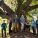 • The six AFA team members stand beside each other in front of an old-growth Douglas-fir tree.