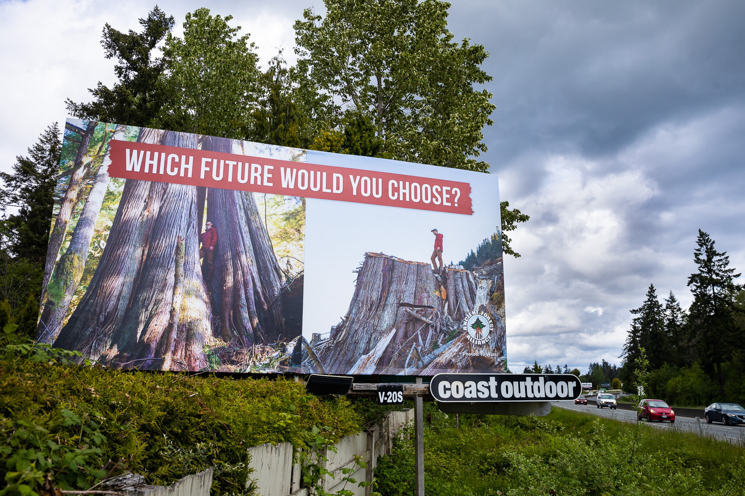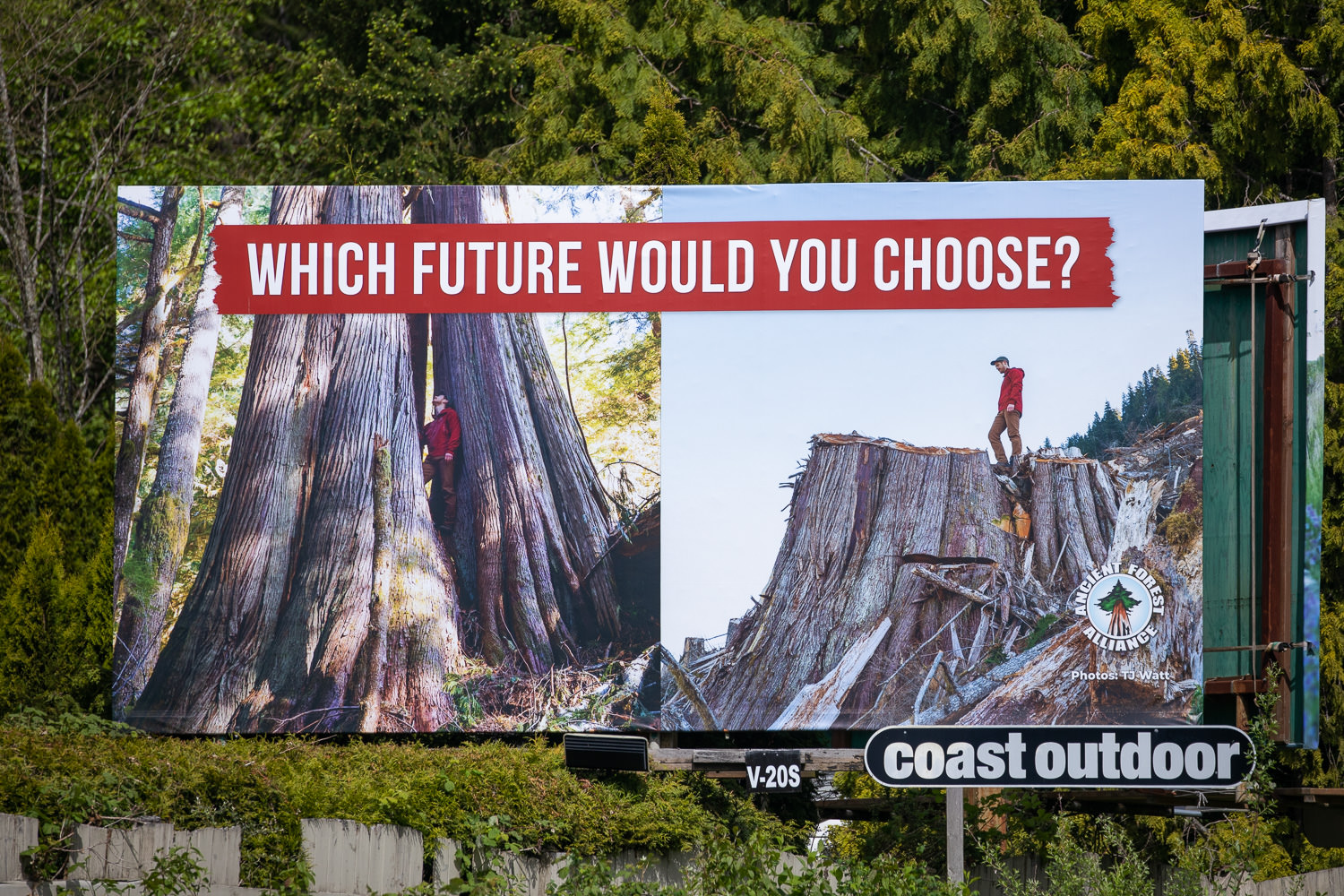 We have a new billboard on display as you’re heading to the Swartz Bay ferry terminal that poses a critical question: Which future would you choose?