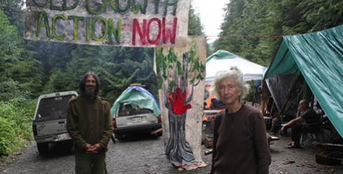 Denman Island resident Eartha Muirhead accompanied Jeff at the Granite Main blockade. They are both veterans of past movements to stop the clearcutting of old-growth trees, including an arrest Muirhead sustained in Clayoquot Sound in 1993, possibly the largest movement of civil disobedience in Canadian history.