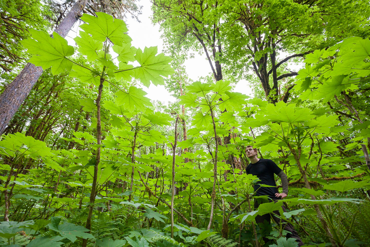 Devil’s club is also associated with old-growth forests due to the fact that it’s slow to spread, and so has trouble recolonizing areas that have been logged. It loves moist, nutrient-rich sites, the same environments that create big trees, and therefore its presence can be an indicator of nearby forest giants; for ardent big-tree hunters, devil’s club can be the dragon which guards the treasure they came to seek.