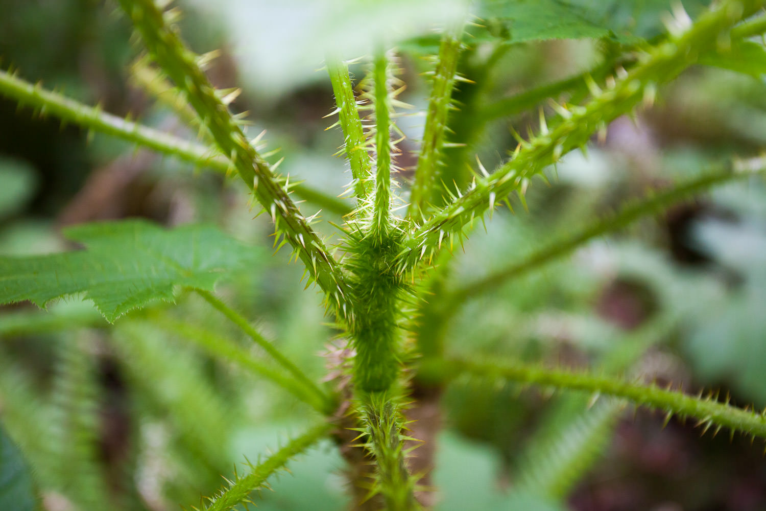 Devil’s club is one of the most dreaded banes of the coastal bushwhacker. Towering to over 16 feet (5 metres) high, this plant sports huge, maple-esque leaves and wicked spines coated in irritating oils. Many bushwhackers would prefer to climb into a grizzly’s den than wade through a dense thicket of devil’s club.