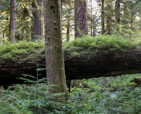 Nurse logs are a hallmark of the old-growth forest, where the slow death of ancient trees is the mechanism of forest renewal and rebirth — not only do they support the new growth of trees, they also a range of rainforest creatures.