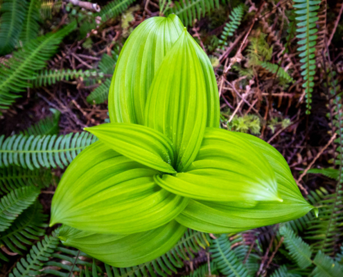 One of the most poisonous, yet beautiful plants of the coastal rainforest is false hellebore (also known as Indian hellebore).