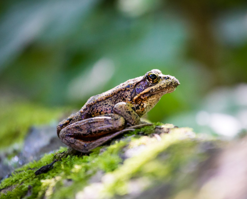 The red-legged frog is a beautiful and secretive inhabitant of the coastal rainforest.