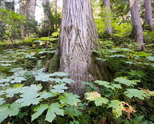 Devil’s club is one of the most dreaded banes of the coastal bushwhacker. Towering to over 16 feet (5 metres) high, this plant sports huge, maple-esque leaves and wicked spines coated in irritating oils.
