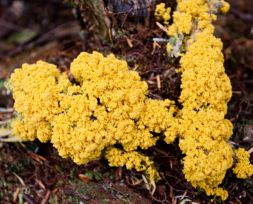 Slime molds are among the oddest creatures of the rainforest. These frequently brightly coloured organisms represent an interphase between the multicellular bodies of plants and animals and the unicellular world of amoebas and other protists.