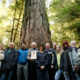 • The six AFA team members stand beside each other in front of an old-growth Douglas-fir tree.