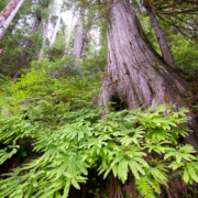 Old-growth forests are integral for their cultural values for many Indigenous Nations, as habitat for endangered species, and for climate stability, tourism, clean water and wild salmon. B.C.’s temperate rainforests represent the largest remaining tracts of a globally rare ecosystem covering just half a per cent of the planet’s landmass. Outside the Great Bear Rainforest, the vast majority of provincial old-growth forests have been reduced to small percentages of their original extent. Logging continues with little legal safeguards to ensure a minimum protection based on science. Yet the current rate of old-growth logging on Vancouver Island alone is more than three square metres per second, or about thirty-four soccer fields per day.