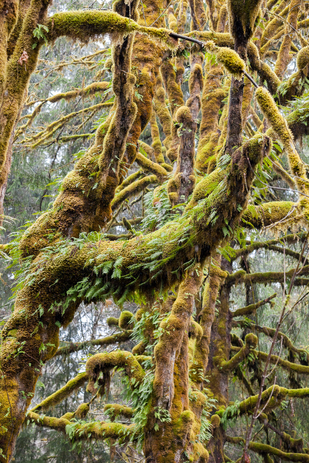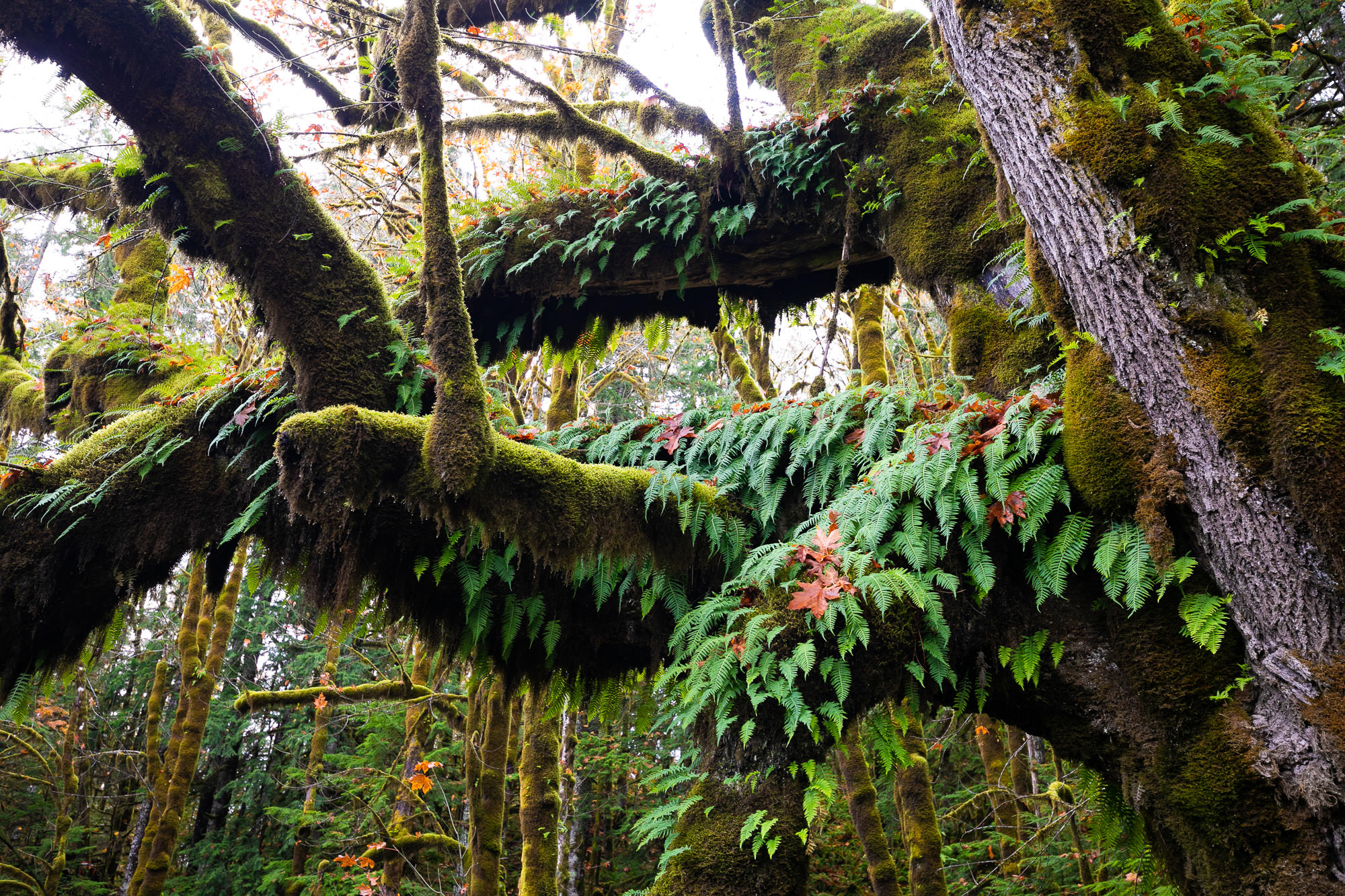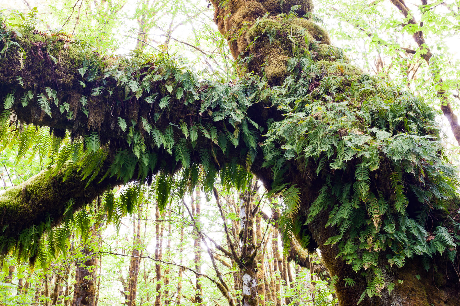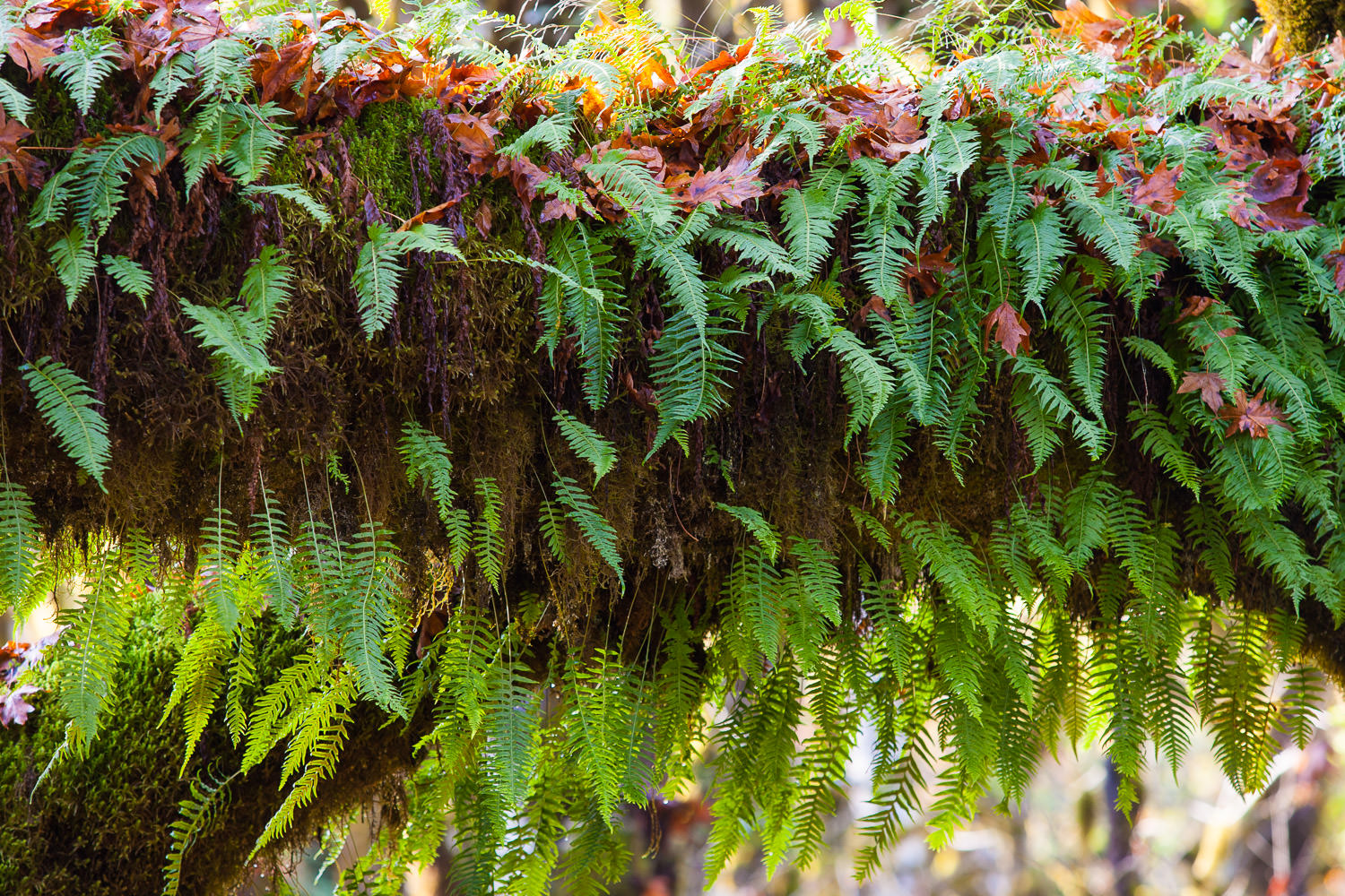 The licorice fern is a dainty forest dweller primarily found growing on mossy rock faces and the trunks and mossy branches of old-growth trees, sometimes hundreds of feet above the ground in the forest canopy. Licorice ferns are especially abundant on the branches of old big-leaf maple trees as well. Great examples can be found in Mossy Maple Grove and Mossome Grove.