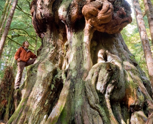 Unlike other spotlighted old-growth forests in British Columbia that have all been “coniferous” or needle-leaf trees (fir, cedar, spruce, etc.), this is an old-growth “deciduous” or broad-leaf forest. The “Mossy Maple Rainforest” is found near Cowichan Lake on southern Vancouver Island in Hul’qumi’num First Nations territory.