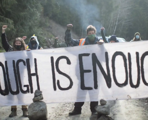 ‘War in the woods’: activists blockade Vancouver Island in bid to save ancient trees