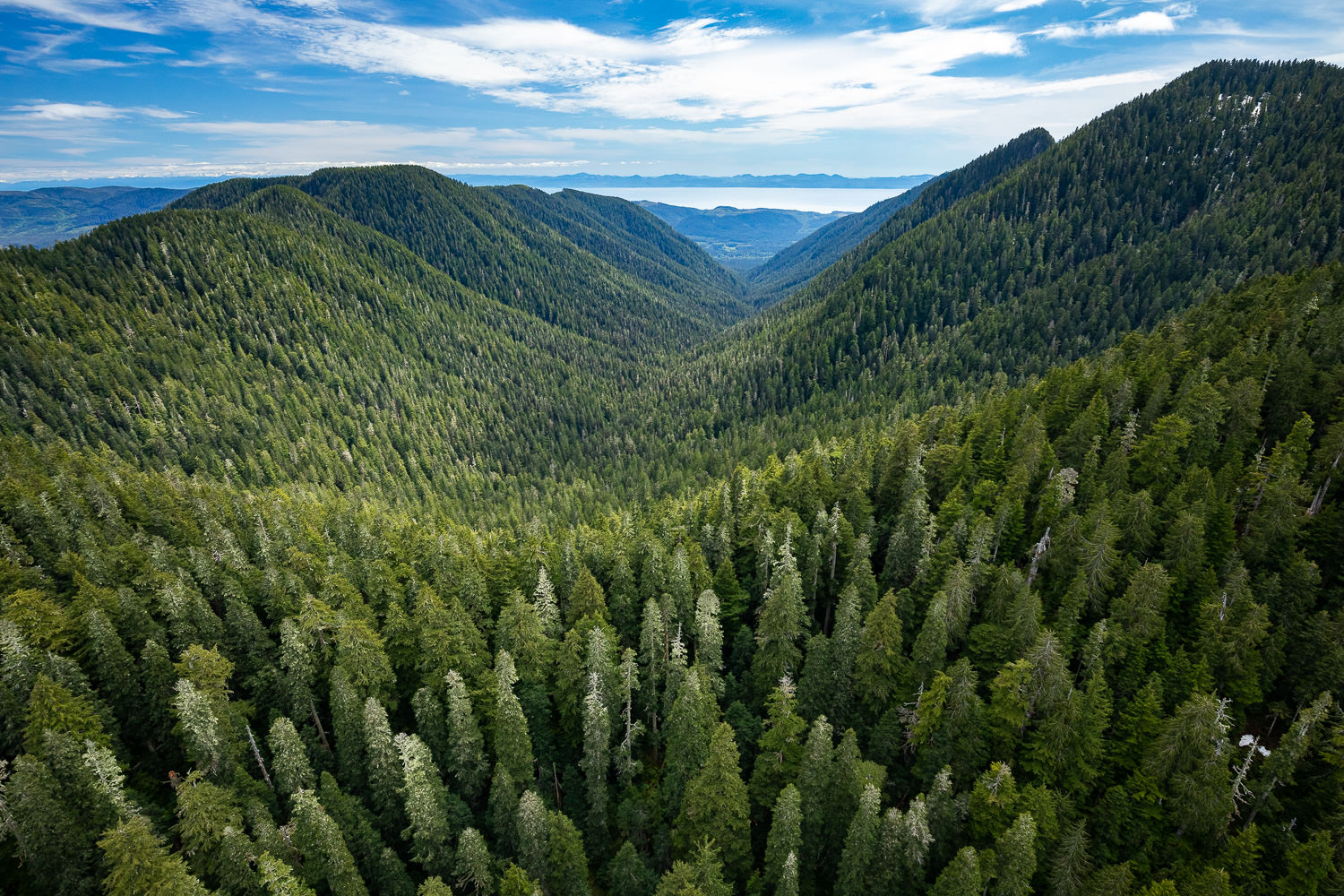 The emerald-green ancient forests of the Fairy Creek Valley in Pacheedaht territory from above. Last week we took to the skies to document old-growth forests and logging across the west coast of Vancouver Island and, when you’re in the air, it’s clear just how incredibly rare a sight this is – a roadless valley free from clearcuts. But how long will it remain that way?