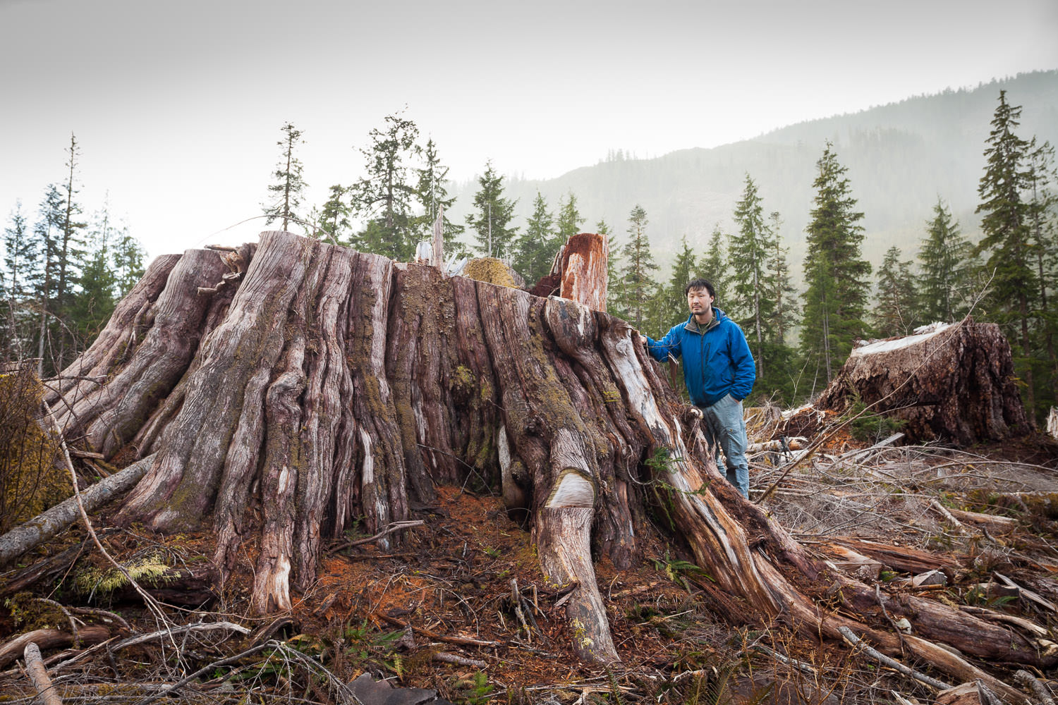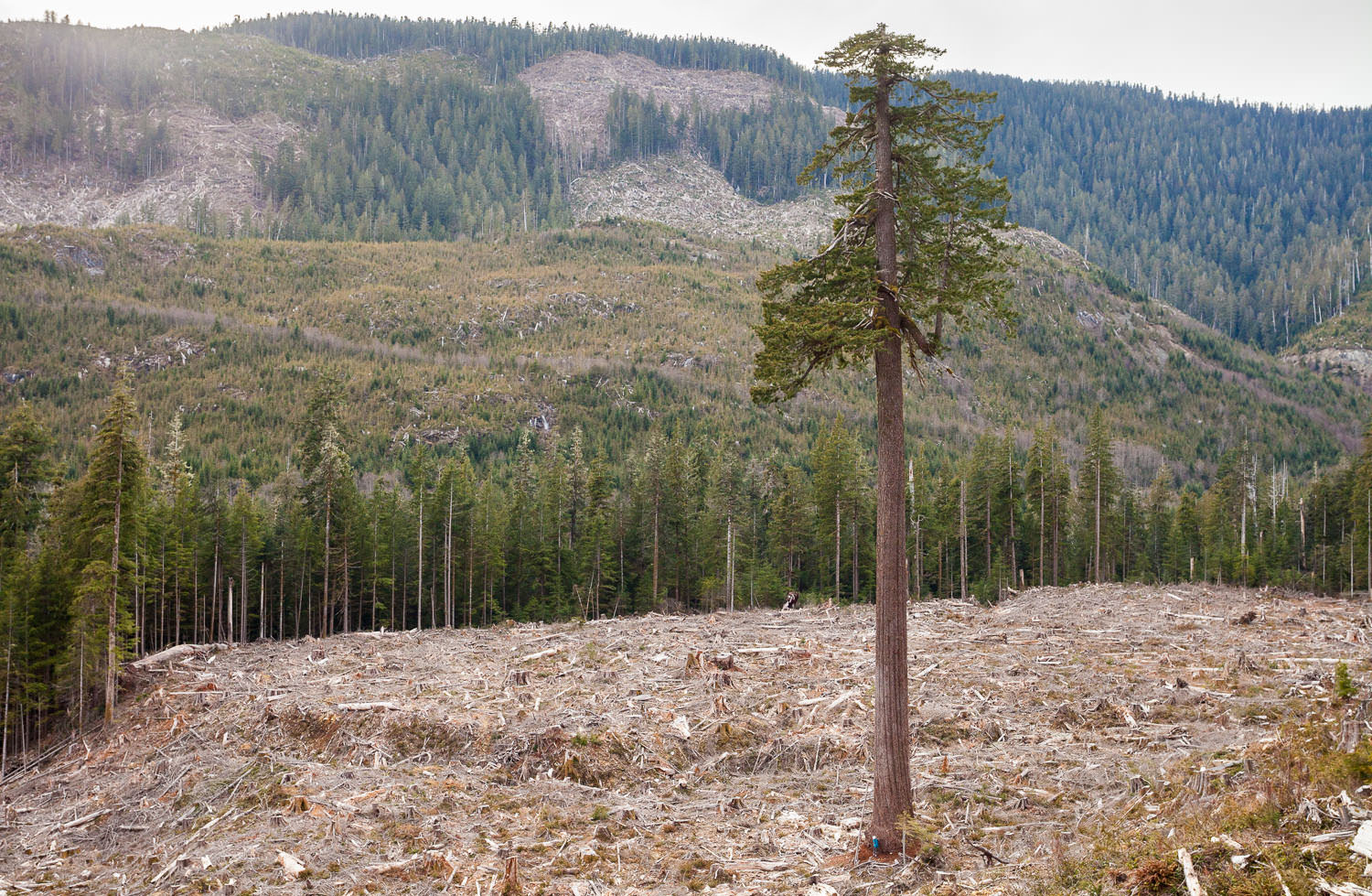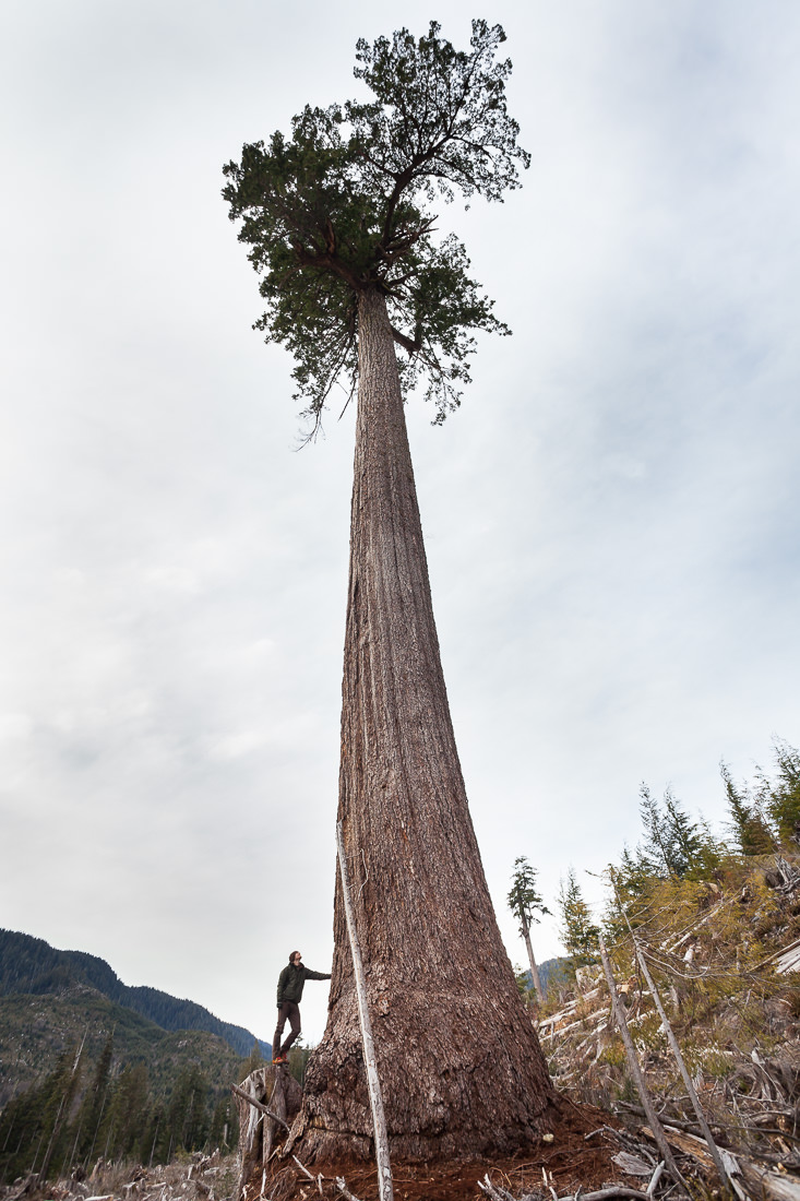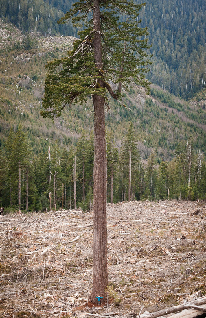 Big Lonely Doug was identified in early 2014 by Ancient Forest Alliance campaigners as the second-largest Douglas-fir tree in Canada. Prior to logging, the tree was once a part of the endangered Eden Grove that still stands unprotected next door. Dozens of massive redcedar and Douglas-fir stumps were scattered throughout this clearcut, evidence of the once grand forest that would have originally surrounded Doug.