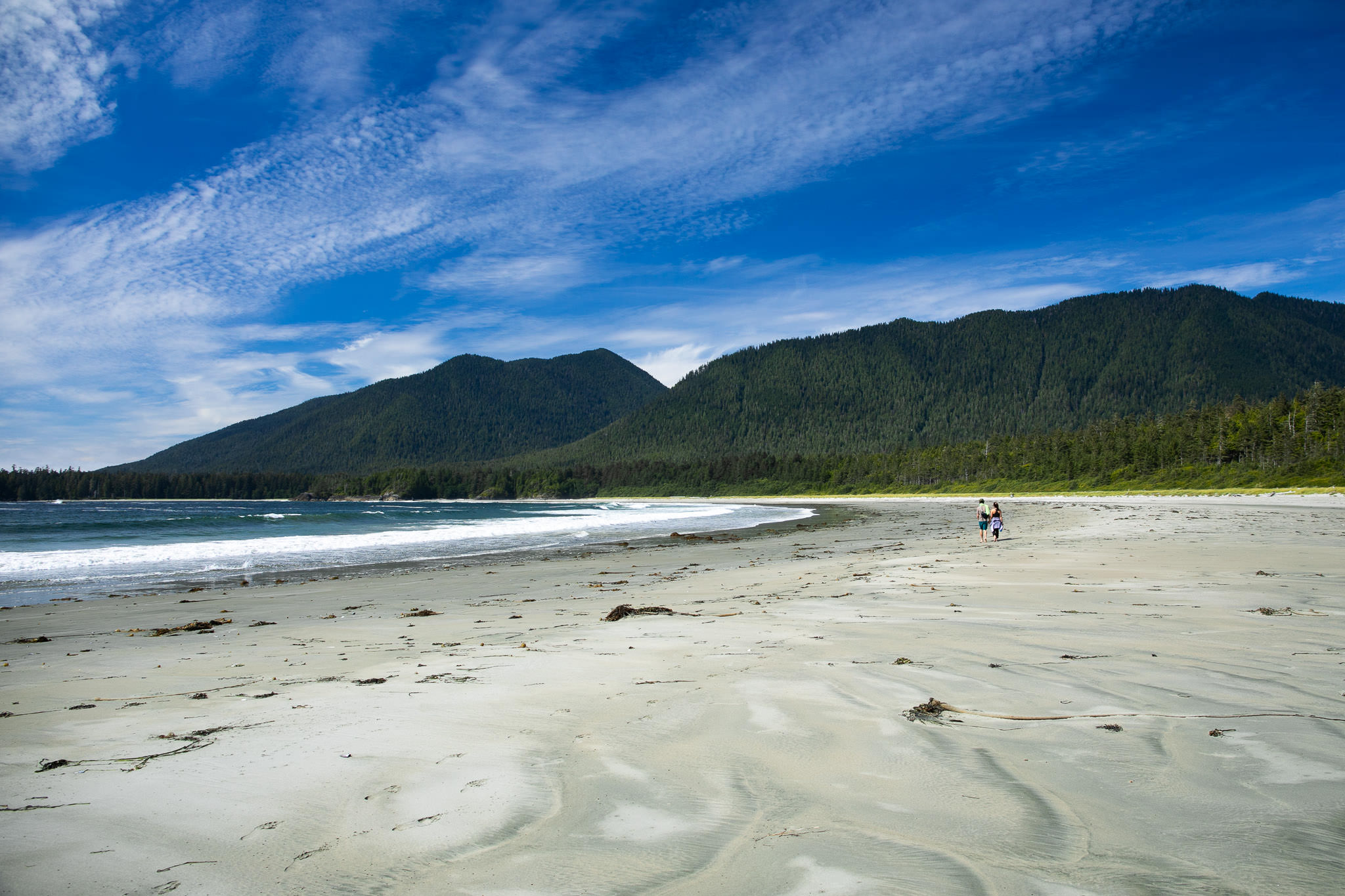 Flores Island is found north of Tofino in Clayoquot Sound in Ahousaht territory and is one of the largest contiguous areas of old-growth forest left on Vancouver Island. The stunning 10 km walk along the Wild Side Trail travels up the Island’s beaches while dipping in and out of the amazing coastal rainforest, where it eventually reaches the blue waters of Cow Bay. Here, gray whales can be seen year-round and wolves, cougars, and bears cruise the beach at night. See the Maaqutusiis Hahoulthee Stewardship Society for water taxis departing from Tofino and trail fees or Ahous Adventures for eco-cultural tours.