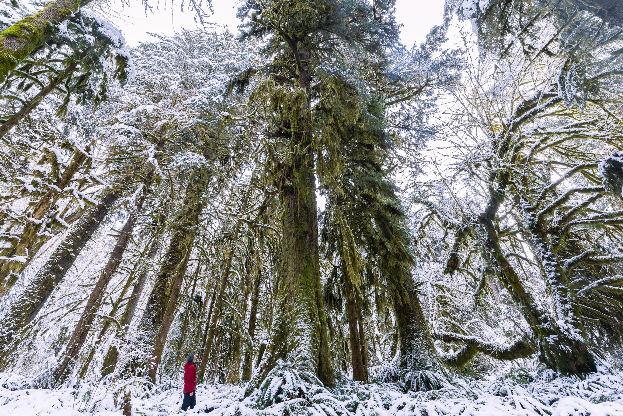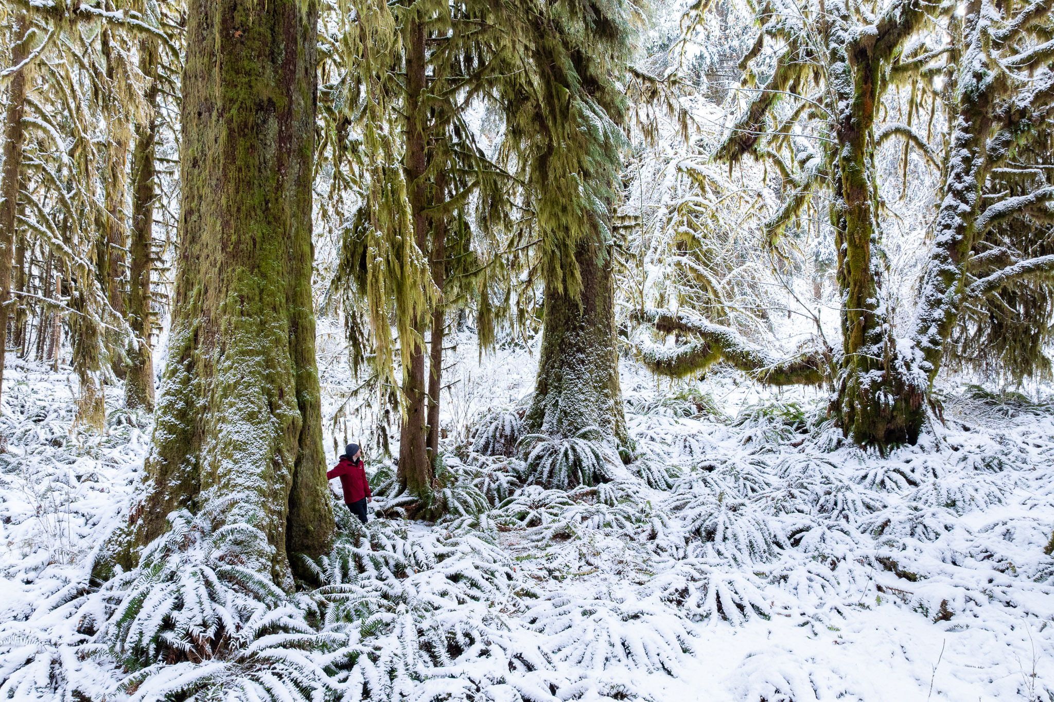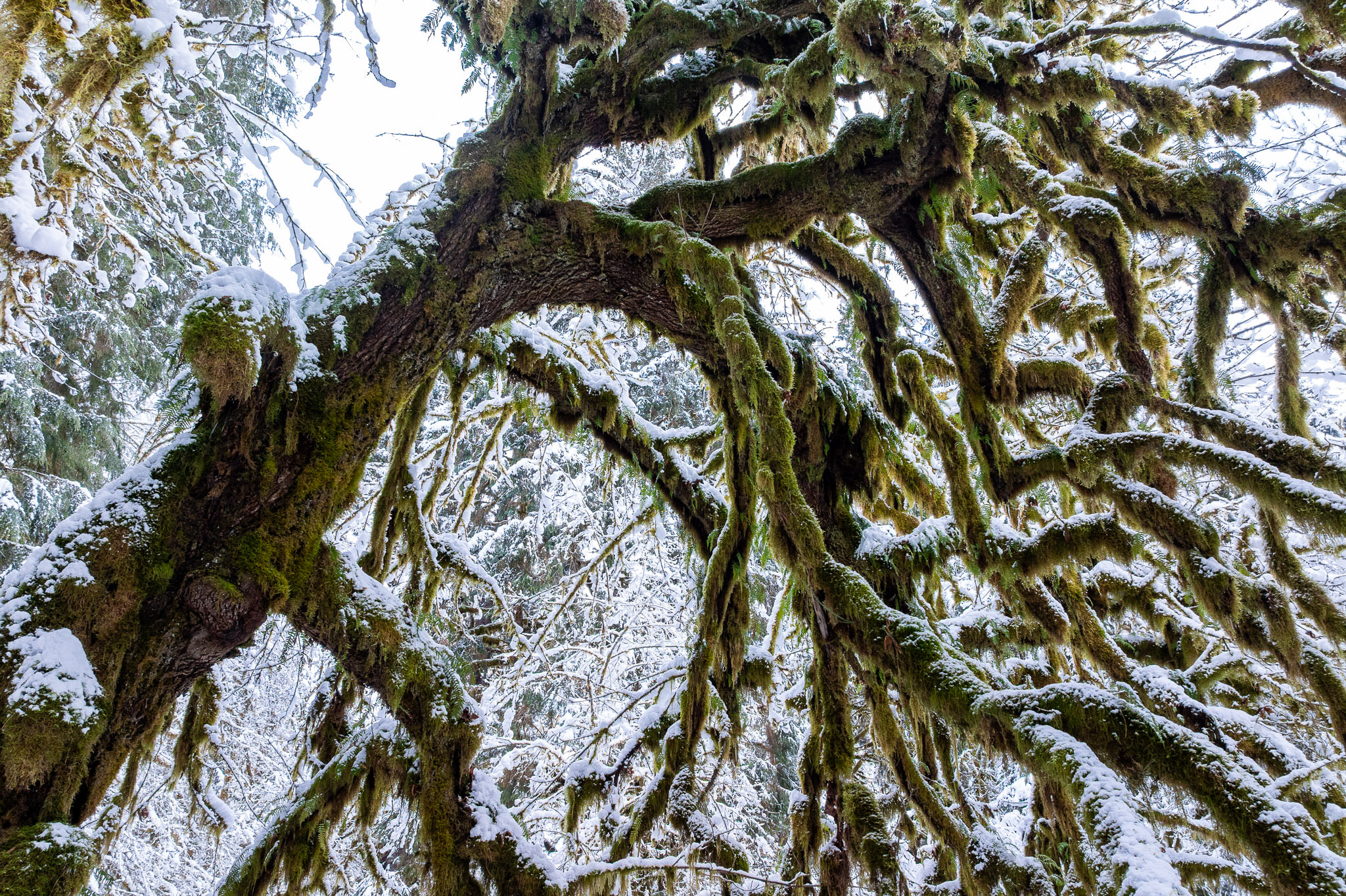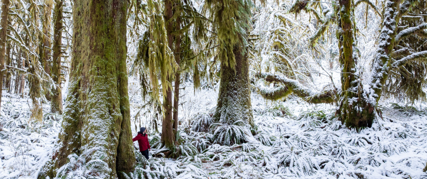 This enchanting lowland ancient forest is home to towering old-growth Sitka spruce trees, ancient bigleaf maples, and wildlife such as deer, elk, wolves, cougars, and bears. Growing largely unprotected near Port Renfrew in Pacheedaht territory, it’s reminiscent of the majestic maple forests found in the Olympic National Park. Rare to begin with on Vancouver Island and virtually non-existent today, it was extra special to see this type of rainforest in a winter wonderland state