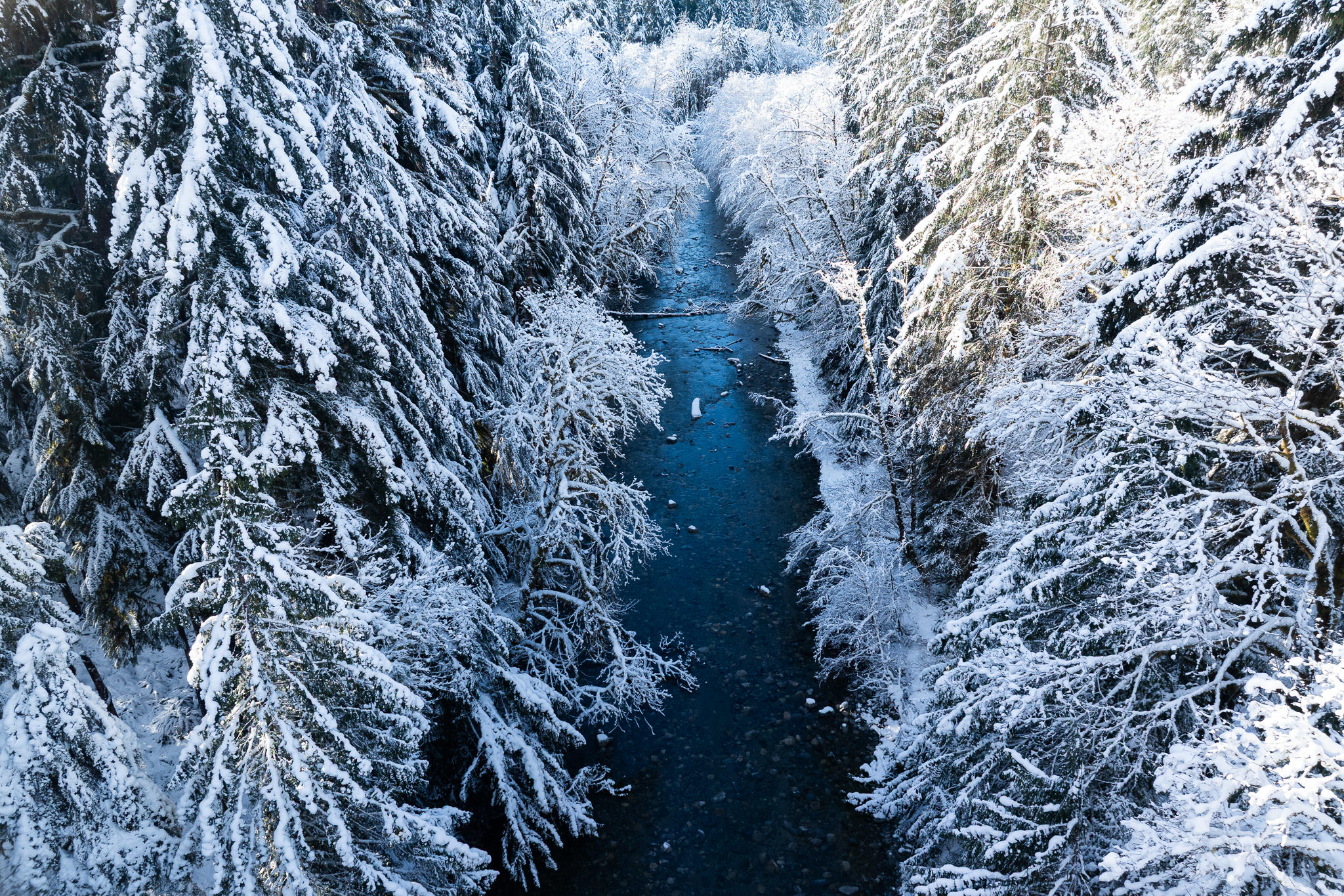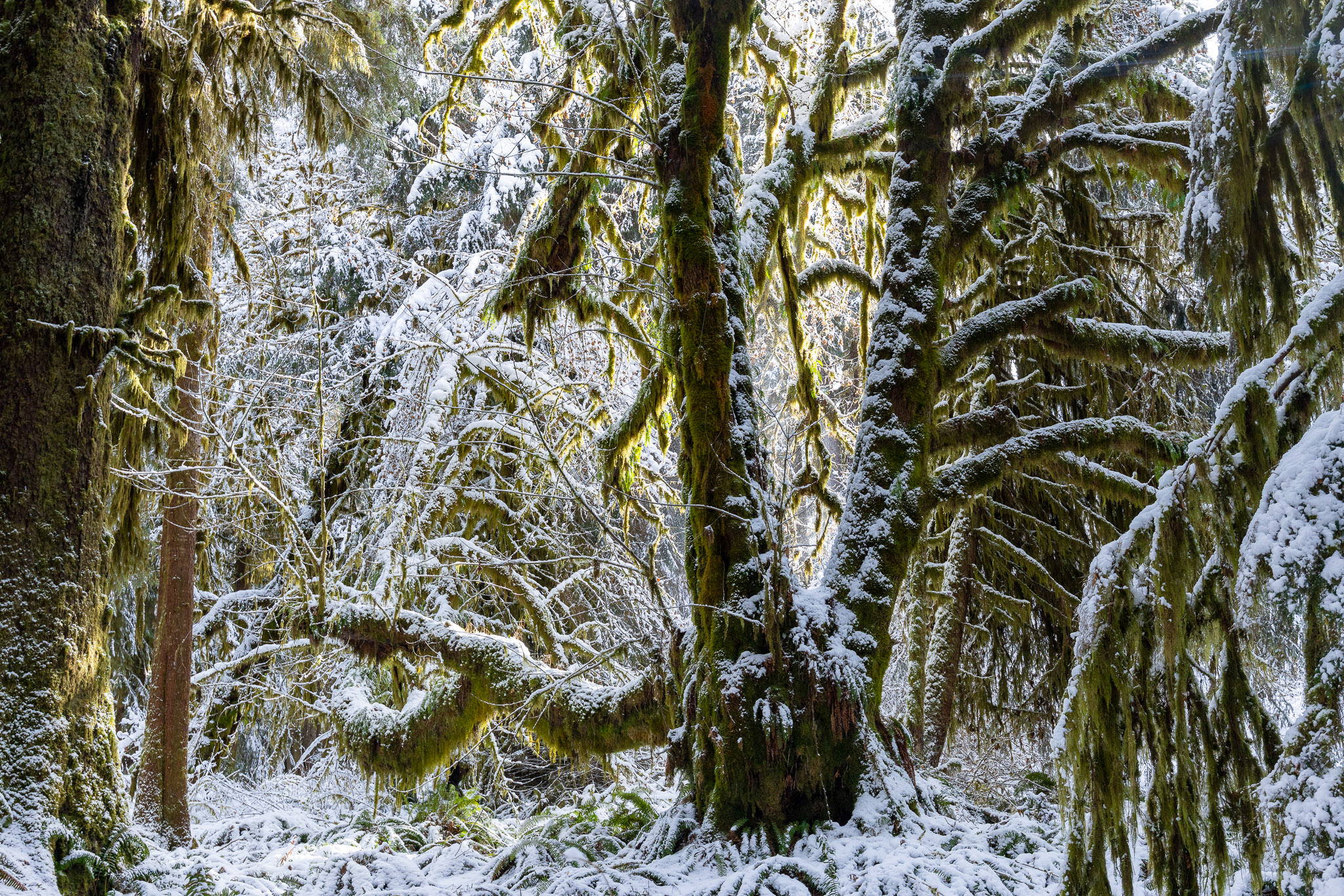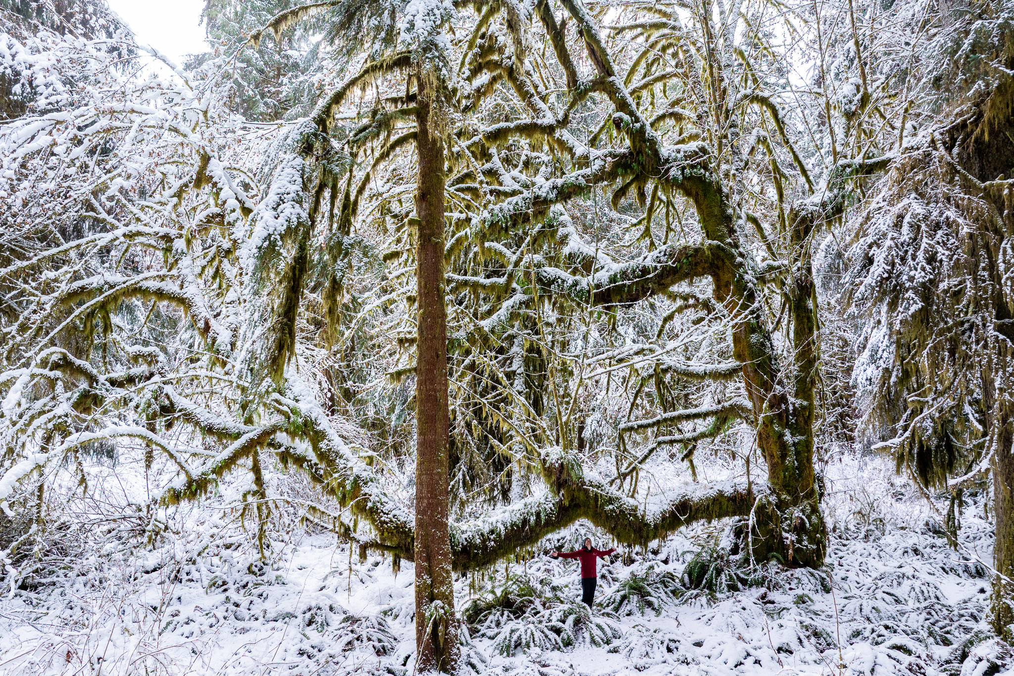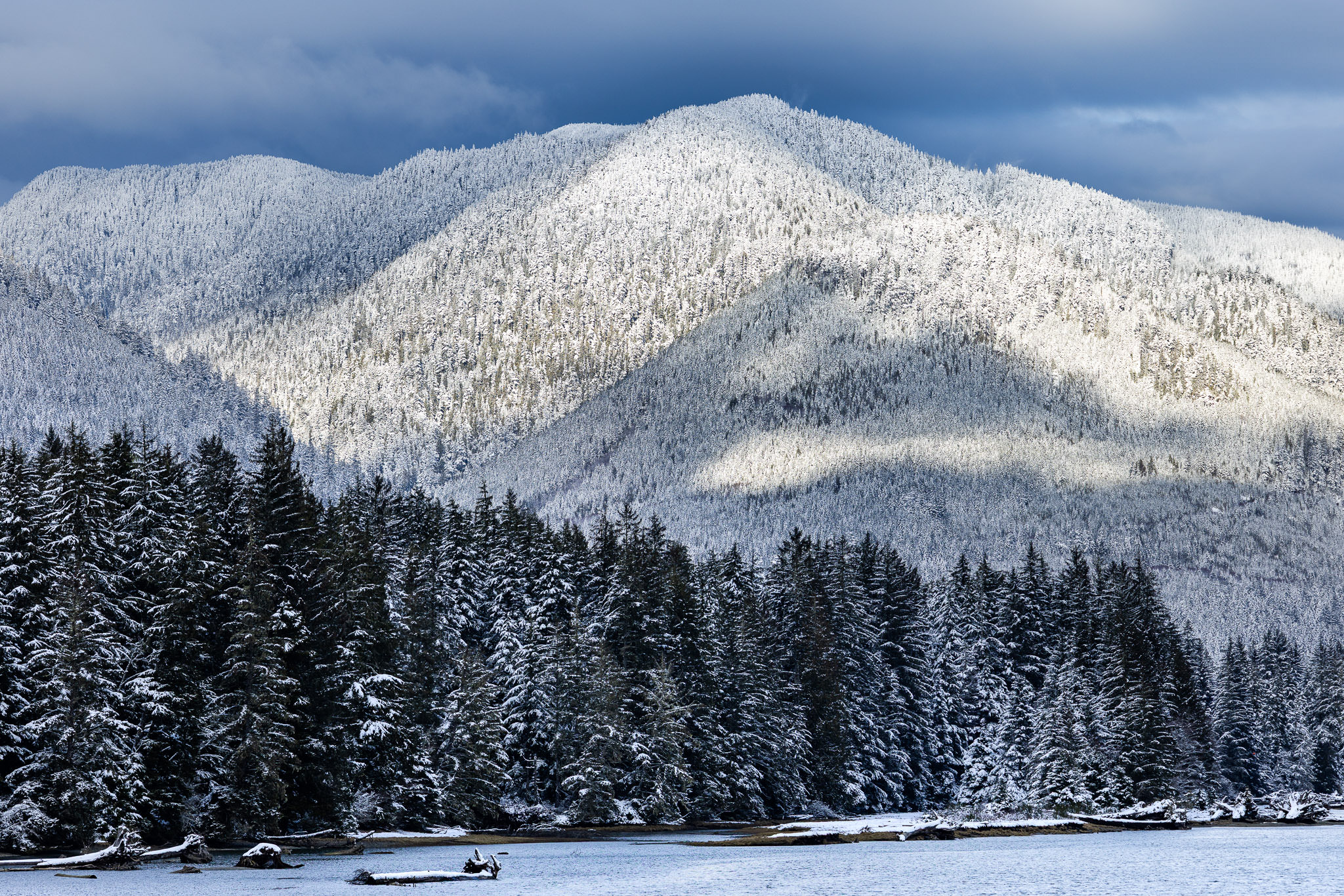 This enchanting lowland ancient forest is home to towering old-growth Sitka spruce trees, ancient bigleaf maples, and wildlife such as deer, elk, wolves, cougars, and bears. Growing largely unprotected near Port Renfrew in Pacheedaht territory, it’s reminiscent of the majestic maple forests found in the Olympic National Park. Rare to begin with on Vancouver Island and virtually non-existent today, it was extra special to see this type of rainforest in a winter wonderland state