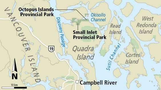The pristine land links Octopus Islands and Small Inlet provincial parks on the north end of Quadra Island, east of Campbell River. It’s a popular location for eco-tourism and has been targeted for a park for more than 16 years.