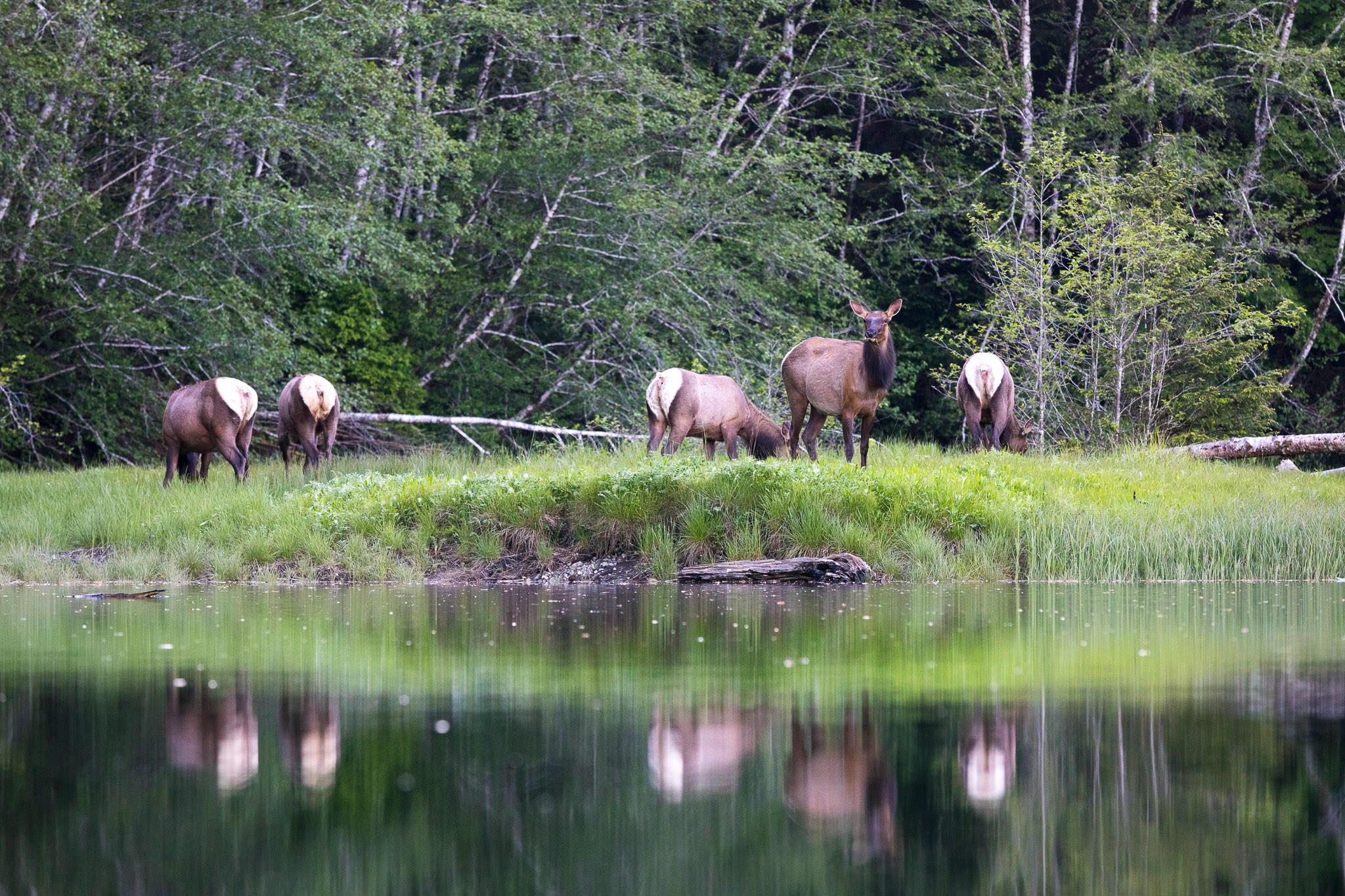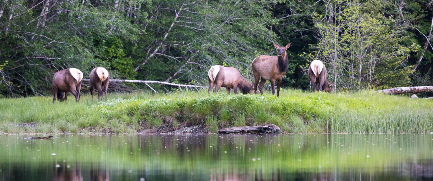 It is fitting that Vancouver Island’s largest land animal is drawn to the habitats that produce BC’s biggest trees: the nutrient-rich floodplains of coastal rivers. The sight of a herd of elk browsing in an old-growth riparian forest full of towering Sitka spruce and ancient moss-draped maples is the pinnacle of rainforest beauty and majesty: charismatic megafauna combined with charismatic megaflora!