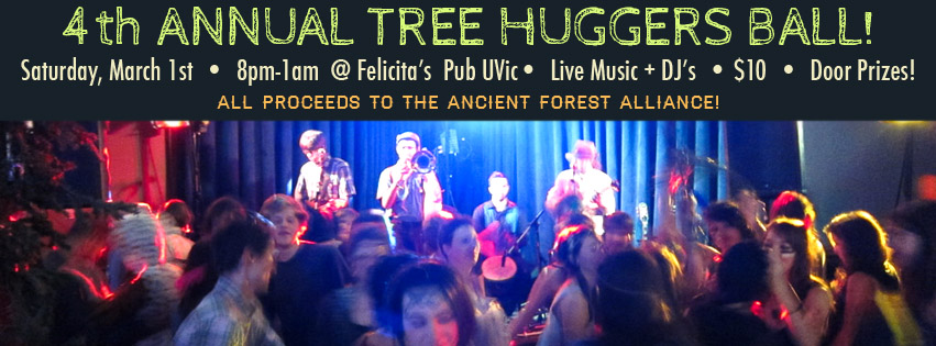 It's that time of year again! The UVic Ancient Forest Committee is holding its 4th annual Tree Huggers Ball dance party fundraiser! This event, with live bands and DJ's, has provided incredible support for the Ancient ForestAlliance, raising thousands of dollars over the past three years – all by having FUN!!