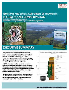 The appeal to government representatives at the climate change summit is part of a new book edited and co-authored by Dominick DellaSala, Chief Scientist of the U.S. based Geos Institute (www.geosinstitute.org) titled “Temperate and Boreal Rainforests of the World: Ecology and Conservation”(for press access to the book: https://bit.ly/cU5mY9).  According to DellaSala, “Canada’s rainforests cleanse the air, purify drinking water, provide unparalleled hunting and fishing opportunities, and store vast amounts of carbon in giant trees, dense foliage, and productive soils. When these rainforests are cut down, much of their carbon is released to the atmosphere as carbon dioxide where it contributes to dangerous global warming. We have to stop treating these rainforests as if they stop at international boundaries and begin working together on our shared conservation interest.”