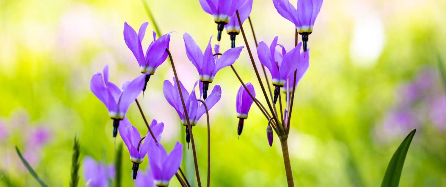 A beautiful highlight in endangered Garry oak meadows is the shooting star, with its vivid purple and swept-back wing-like petals.