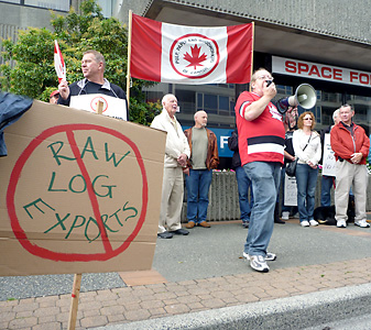 Stop the Export of Our Future, Our Jobs - Sponsored by the Pulp, Paper and Woodworkers of Canada, supported by the Ancient Forest Alliance.