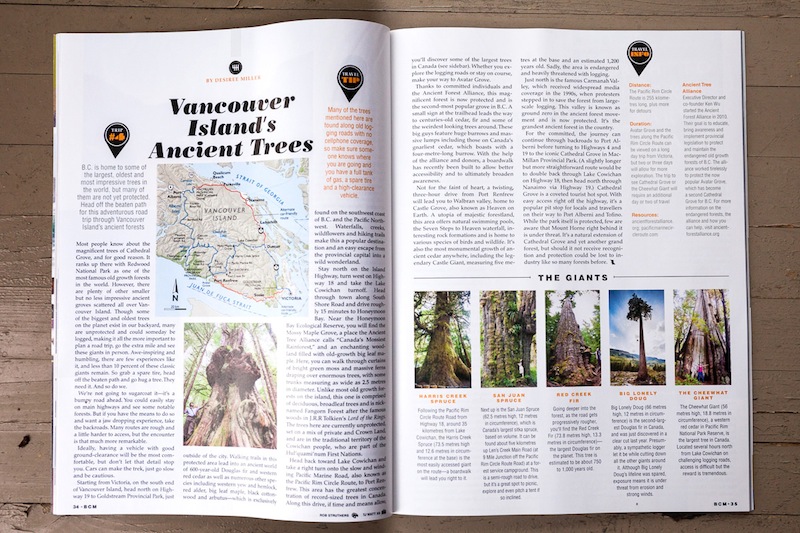 Here's an article in the latest British Columbia Magazine about visiting the old-growth forests of the Port Renfrew region along the “Circle Route”! It also raises the plight of the old-growth forests in the Walbran Valley, Horne Mountain (above Cathedral Grove), and Mossy Maple Grove, and includes a blurb about the Ancient Forest Alliance. See image to view the article, or pick up a hardcopy of the latest issue!
